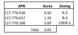 Size: 3.83 +/-Acres zoned CM and R-3